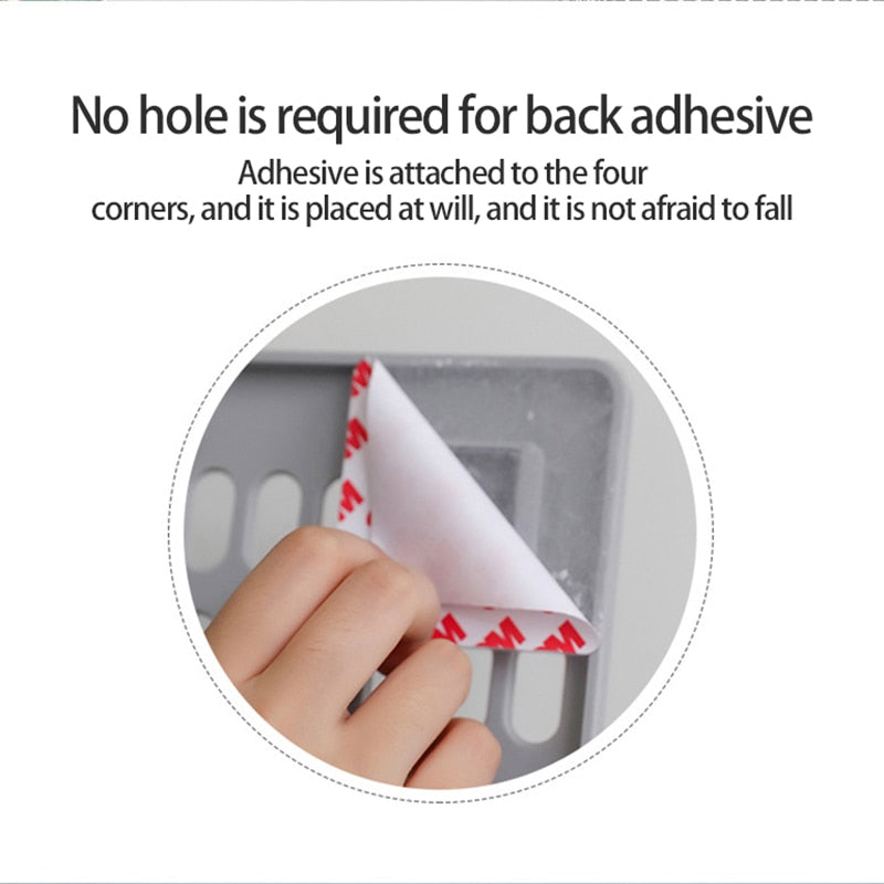 Stay organized with this Hole Board Storage Rack Desk Organizer. With self-adhesive wall shelf hooks, the versatile storage and organization system easily attaches to most surfaces to be used in any room of the house. It's the perfect storage solution for small items and accessories.